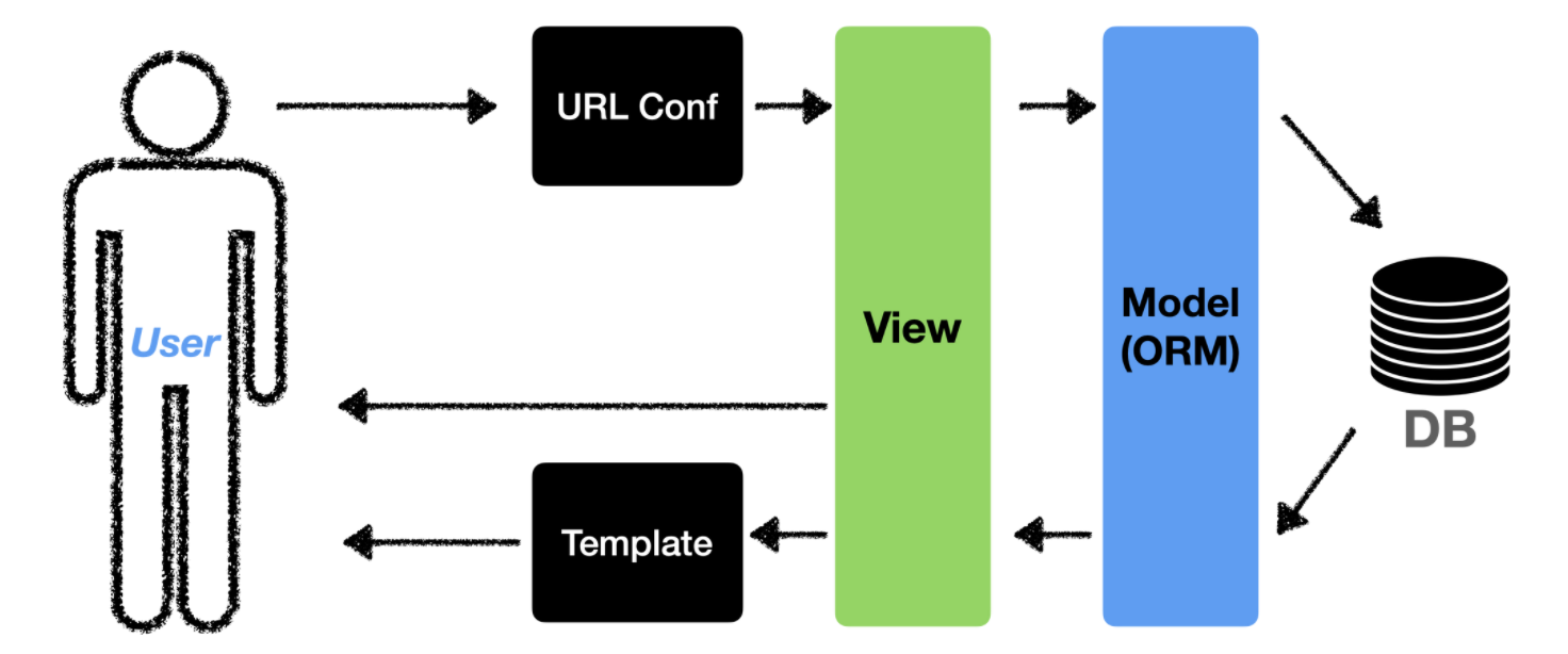 장고의 방식으로 Model Template View 의 약자를 써서 MVT 패턴이라고 부른다.
